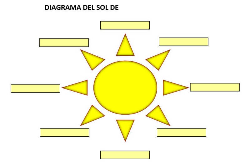 Se llama así porque tiene la forma de un sol, con un círculo en el centro donde se coloca la idea principal y varios triángulos alrededor donde se ubican las ideas secundarias o subtemas.